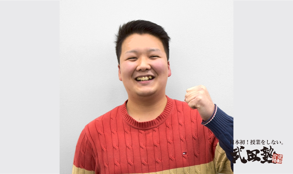 初めまして。武田塾津校 校舎長の藤原佑成と申します。